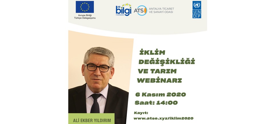 Antalya Ticaret ve Sanayi Odası (ATSO) AB Bilgi Merkezi ev sahipliğinde, Avrupa Birliği Türkiye Delegasyonu ve Birleşmiş Milletler Geliştirme Programı (UNDP) işbirliğinde İklim Değişikliği ve Tarım webinarı gerçekleştirilecek.