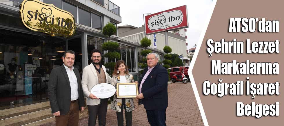 Antalya Ticaret ve Sanayi Odası (ATSO) Başkanı Davut Çetin ve Başkan Yardımcısı Mustafa Atılgan, Antalya’nın geleneksel lezzetlerinden Kabak Tatlısı'nı coğrafi işaret standartlarına göre üreten Şişçi İbo'yu ziyaret ederek, Coğrafi İşaret Sertifikası ve Belgesini verdi. Başkan Davut Çetin, restoranın üçüncü nesil temsilcileri Fatoş Yavaş Yıldırım ve Cem Yıldırım'la sohbet edip faaliyetleri hakkında bilgi aldı.