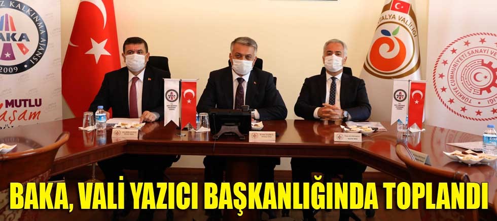 Antalya Valiliği Toplantı Salonu’nda Antalya Valisi Ersin Yazıcı başkanlığında gerçekleşen BAKA Yönetim Kurulu’nun olağan toplantısına; Isparta Valisi Ömer Seymenoğlu, Burdur Valisi Ali Arslantaş, Isparta Belediye Başkanı Şükrü Başdeğirmen, Burdur Belediye Başkanı Ali Orkun Ercengiz, BAKA Genel Sekreteri Volkan Güler ve yönetim kurulu üyeleri katıldı.