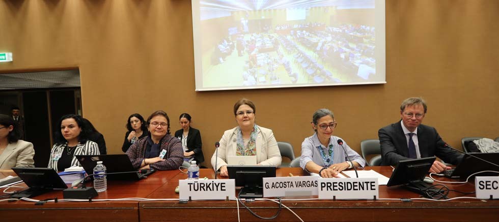 Bakan Derya Yanık, İsviçre’nin Cenevre kentinde gerçekleştirilen Kadınlara Yönelik Ayrımcılığın Önlenmesi (CEDAW) Komitesinin 82’nci oturumuna katıldı. Toplantıda Bakanlık koordinasyonunda hazırlanan Türkiye raporuna ilişkin bilgi veren Bakan Yanık, Türkiye’nin 1986 yılından beri tarafı olduğu CEDAW’ın 8’inci Dönemsel Ülke Raporuyla Yapıcı Diyalog Sürecine katılmaktan memnuniyet duyduğunu söyledi.