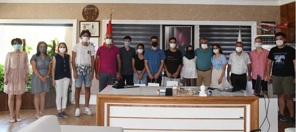 Kemer Belediyesi tarafından gençlerin eğitimine katkı sağlamak amacıyla, Başkan Necati Topaloğlu tarafından ücretsiz olarak hayata geçirilen Ahmet Erkal Destek Eğitim Kursu’nda, 2020-2021 eğitim ve öğretim yılını başarıyla tamamlayan ve dereceye giren öğrenciler, öğretmenleri, Kurum Müdürü Suat Göv, Kültür ve Sosyal İşler Müdür Asım Yıldırım ile birlikte Kemer Belediye Başkanı Necati Topaloğlu’nu ziyaret etti.