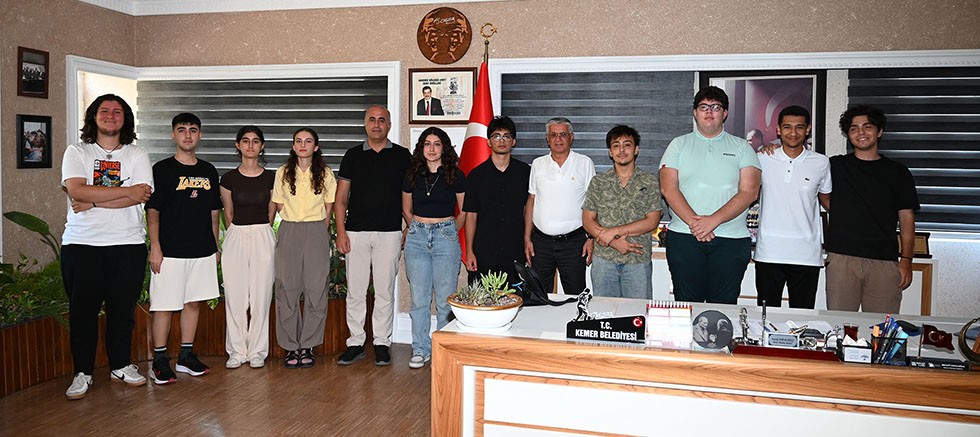 Kemer Belediye Başkanı Necati Topaloğlu’nun “Eğitim varsa Gelecek var” projesi kapsamında hayata geçirdiği Ahmet Erkal Destek Eğitim Kursu'nda, bu yılki eğitim ve öğretim yılını başarıyla tamamlayan ve üniversite sınavında dereceye giren öğrenciler, Kurs Müdürü Suat Göv eşliğinde Kemer Belediye Başkanı Necati Topaloğlu'nu ziyaret ederek başarılarını paylaştı.