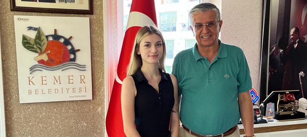 Karanfil, girdiği yetenek sınavında elde ettiği başarıyı Kemer Belediye Başkanı Topaloğlu ile paylaştı.