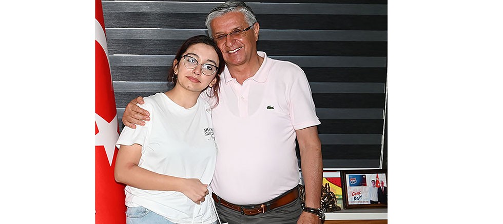 Elde ettiği başarısını Kemer Belediye Başkanı Necati Topaloğlu ile paylaşan Tosun, Başkan Topaloğlu ile sohbet ederek hayallerinden bahsetti.