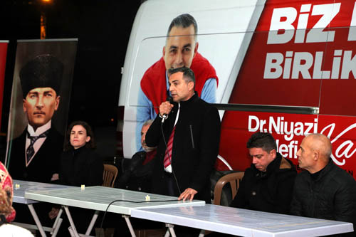 CHP Manavgat Belediye Başkan Adayı Niyazi Nefi Kara, insan odaklı sosyal belediyecilik anlayışını kent halkıyla birlikte daha ileri noktalara taşıyacaklarını dile getirdi. Başkan Adayı Kara, “Burası benim de çocukluğumun geçtiği yer. Ben o gün Şükrü Başkanımın ağlamasıyla güne başladım. Allah bir daha o günleri yaşatmasın. 16 helikopter vardı ama 12 tanesi sadece bakan ve bürokratları taşıyordu. Hükümetin yangına yaklaşımı buydu. Genel Başkanımız Kemal Kılıçdaroğlu’nu arayarak bölgeye çağırdım. Durum ciddi hiçbir tedbir alınmıyor siz gelirseniz iktidar da buraya gelir dedim. Ve neticesinde Manavgat’a geldi. Vekilimizde bahsetti. Binlerce ağacı alıp götürdüler. Birde üstüne yolları bozdular. Konutlar ücretsiz yapılsın dedik. O ağaçların paralarının buralara yatırım olarak gelmesi gerekiyordu. Manavgat’ın evladı olarak sizlere hizmet etmek boynumuzun borcu. Sizlerin desteği ile Milletvekilliği yaptım. Hekim olarak görev yaptım. Hiç kimseyi ayırmadık. Sizler ne kadar mutlu olursanız bizler de o kadar mutlu olacağız. Derdiniz derdimiz, sevinciniz sevincimiz olacak. Hastane hapishane konusunu pek çok defa meclis gündemine taşıdım. Bunu Manavgat’a reva görmeyin diye. Ama eğitim alanına gittiler deniz manzaralı cezaevi yaptılar. Halkımız da doktor için hastane için Antalya’ya gitmeye devam ediyor. Sizin sağlığınız için bizler de proje ortaya koyduk. Sağlık evi projemizle sizlerin yanınızda olacağız. Antalya’ya ulaşım konusunda da destek vereceğiz. Sağlık taramalarımızı özellikle kadınlar için geniş kapsamlı çalışmalar yapacağız. Köy evi projemizle keyifli vakit geçirebileceğimiz ve bir araya gelip Manavgat’ı tartışabileceğimiz bir yer inşa edeceğiz. Çiftçimizin dalında kalan mahsulüne de çözüm bulacağız. Biz de köylü çocuğuyuz. Çiftçimiz, mazot, ilaç, gübre ve tohum fiyatlarının altında kalarak ezilmiş durumda. Peki biz belediye olarak ne yapabiliriz diye düşündük. İnsanlarımıza, toprak analizi ve zirai mühendislik gibi teknik konularda destek olacağız. Mahsulü elde kalan çiftçimizden malını satın alıp “Manavgat” markası altında tüm Türkiye’ye satacağız. Buradan elde edeceğimiz gelir sizlere dönecek. Hayvancılıkta da aynısını yapacağız. Veteriner desteği olacak. Manavgat suyunun boşa akmasını istemiyoruz. Patent kurarak suyu markalaştıracağız ve satışını gerçekleştireceğiz. Kreş sayısını arttıracağız. Kütüphane sistemimizi büyüteceğiz. Gençlerimizi donanımlı hale getirerek kalifiye eleman haline getireceğiz. Turizmi 12 aya yaymak istiyoruz. İstihdam sorunun çözümüne katkı sağlayacak. Cep telefonlarına yükleyeceğimiz uygulama ile insanlar kendi bölgelerinde yapılacak olan çalışma ve hizmetlere kendileri karar verecek. Sizlerle beraber olacağız. Her şeyde birlikte hareket edeceğiz. Belediye başkanımız Şükrü Sözen, 15 yıl görev yaptı ve birçok eseri kentimize kazandırdı. Bizler de Manavgat’ımızı daha ileriye taşıyacak olan hizmetleri hayatı geçireceğiz. Misafirperverliğinizden dolayı sizlere teşekkürlerimi sunuyorum” dedi.