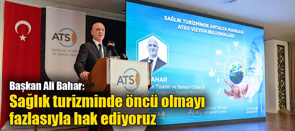 ATSO Başkanı Ali Bahar, “Şehrimizde çok büyük bir potansiyel var. Türkiye’ye tatil için gelen bir turist ortalama 950 dolar harcarken, sağlık turizmi için gelen hasta bin 600 dolar harcıyor. Türkiye genelinde sağlık turizmi yetki belgesine sahip kuruluşları ve aracı kuruluşları iller bazında incelediğimizde Antalya, İstanbul ve Ankara’dan sonra üçüncü sırada yer almaktadır. Yani Antalya’mız sağlık turizmi konusunda öncü olma konumunu fazlasıyla hak etmektedir” dedi.