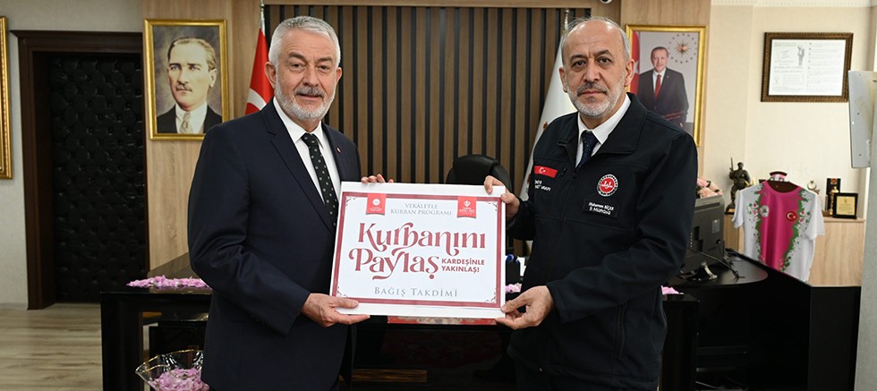 Türkiye Diyanet Vakfı, bu yıl "Kurbanını Paylaş, Kardeşinle Yakınlaş" temasıyla yurtiçi ve yurtdışında vekaletle kurban bağışlarını alıyor. Belediye Başkanı Şükrü Başdeğirmen, Türkiye Diyanet Vakfı’na vekaletle kurban bağışında bulundu. Başkan Başdeğirmen’in kurban vekaletini Türkiye Diyanet Vakfı adına İl Müftüsü Muharrem Biçer aldı.