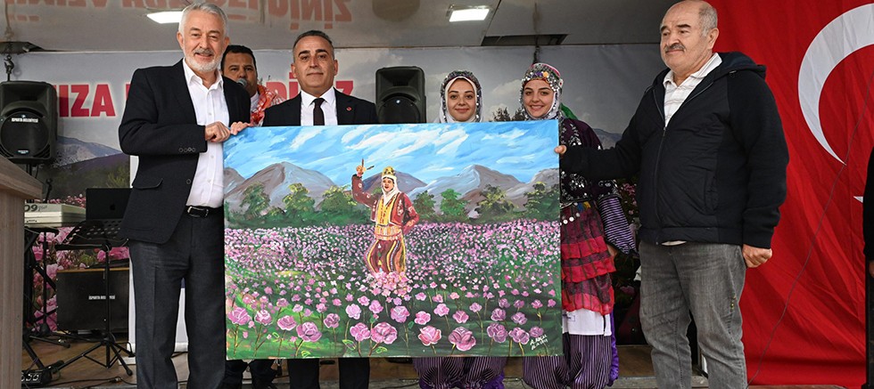 Konuşmasının ardından ISPARTALYA Dernek Başkanı Gürkan Gülcü ve Ahmet Koçak tarafından Belediye Başkanı Şükrü Başdeğirmen’e Isparta’nın Gülleri isimli bir tablo hediye edildi.