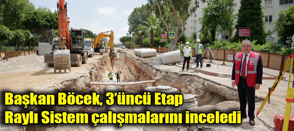 Antalya Büyükşehir Belediye Başkanı Muhittin Böcek, 3. Etap Raylı Sistem Projesi kapsamında Meltem Bulvarı üzerinde devam eden alt yapı çalışmalarını yerinde inceledi. Devam eden çalışmalar hakkında bilgi alan Başkan Böcek, Meltem etabındaki çalışmaların 2 ay içinde tamamlanacağını belirtti.