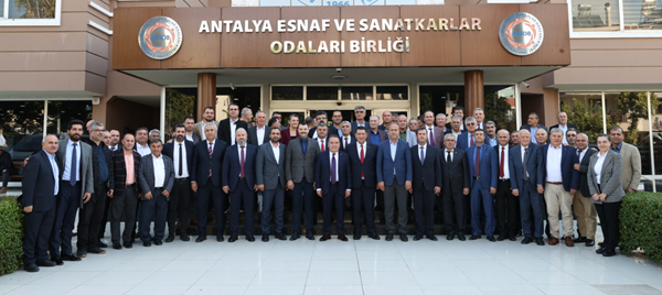 Antalya Büyükşehir Belediye Başkanı Muhittin Böcek, Antalya Esnaf ve Sanatkarlar Odaları Birliği’ni (AESOB) ziyaret ederek, oda başkanları ile toplantı yaptı. Gazipaşa’dan Kaş’a 75 oda başkanının katıldığı toplantıda esnafın sorunları masaya yatırıldı. Belediye bürokratlarının da hazır bulunduğu toplantı öncesi esnafa seslenen Başkan Böcek, kendisinin de ulaşım esnaflığından geldiğini hatırlattı. Her ilçede esnafın sorunlarını çözmeye çalıştıklarını belirten Başkan Böcek, sık sık toplantılar ve çalıştaylar düzenleyerek kenti esnafla birlikte yönetmeye çalıştıklarını anlattı. Vatandaşın derdine derman olmaya geldiklerini ifade eden Başkan Muhittin Böcek, geçen dönem yapılan sözleşmelerde işlevi kaybolan Halk Ekmek fabrikasının yerine Döşemealtı’nda 120 bin kapasiteli Halk Ekmek Fabrikası açarak, halka 3.25 TL’den ekmeği sattıklarını anlattı.