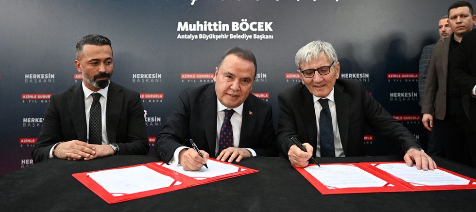 Antalya Büyükşehir Belediyesi, Belediye-İş Sendikası ve Güvenlik İş Sendikası arasında Büyükşehir Belediyesi İnsan Kaynakları A.Ş. ASAT ve kadrolu işçileri ilgilendiren ‘Toplu İş Sözleşmesi Ek Protokolü’ törenle imzalandı. Cam Piramit Kongre Merkezi’nde düzenlenen törene Antalya Büyükşehir Belediye Başkanı Muhittin Böcek, Belediye-İş Sendikası Genel Başkanı Nihat Yurdakul, Güvenlik İş Sendikası Genel Başkan Yardımcısı Ahmet Durcuk ve binlerce Büyükşehir Belediye çalışanı katıldı. Saygı duruşu ve istiklal marşının okunması ile başlayan ek protokol töreninde Muhittin Böcek başkanlığındaki Büyükşehir Belediyesi’nin 5 yıllık çalışmalarının anlatıldığı film izlendi. Daha sonra Başkan Böcek ve Sendika Genel Başkanları protokolü imzalamak üzere alkışlar eşliğinde sahneye çıktı.