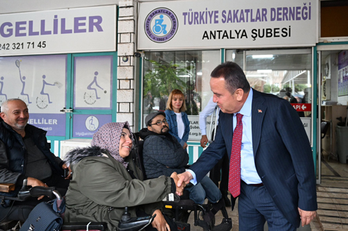 Türkiye’de bir ilki gerçekleştirerek, Türkiye Sakatlar Derneği Antalya Şube Başkanı Mehmet Karavural’ı Başkan danışmanı olarak atadığını hatırlatan Başkan Böcek, “Kendisi sizlerin sesi olmakta, sizler adına en iyisinin yapılması için büyük gayret göstermektedir’ dedi.