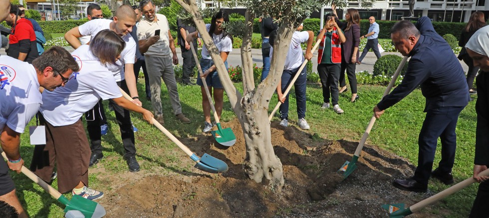 Gazze’deki hastane saldırısını da şiddetle kınadığını belirten Büyükşehir Belediye Başkanı Muhittin Böcek, “Dün akşam hastaneye yapılan saldırıda çocuklar, kadınlar, gençler, masum insanlar hayatını kaybetti. Bu vahşete dur demek lazım. Tüm dünyanın bu savaşa karşı birlik olması lazım. Bu vahşeti siz gençlerle beraber kınıyoruz. Bugün bu zeytin ağacını barış, dostluk ve kardeşlik adına dikiyoruz” dedi. Başkan Böcek ağaç dikiminin ardından konuk gençlere lavanta fidesi hediye etti.