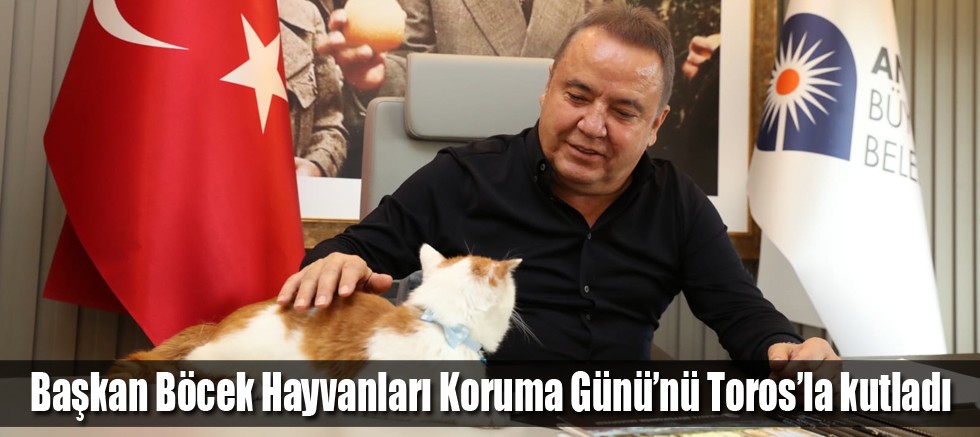 Başkan Muhittin Böcek, 4 Ekim Dünya Hayvanları Koruma Günü’nde Elazığ depreminden yaralı olarak kurtarıldıktan sonra sahiplendiği Toros’u unutmadı. Toros’u başkanlık makamında ağırlayan Başkan Böcek, sevimli kediyi severek, 4 Ekim Dünya Hayvanları Koruma Günü’nü kutladı. Toros’un ekibinin bir parçası olduğu belirten Başkan Böcek, şunları söyledi: “Toros bizim maskotumuz oldu. 12 yaşında sağlıklı bir şekilde yaşaması için her şeyi yapıyoruz. Sevimli dostlarımızı ve hayvan haklarını çok önemsiyoruz. Onların da yaşama hakkı var” dedi.