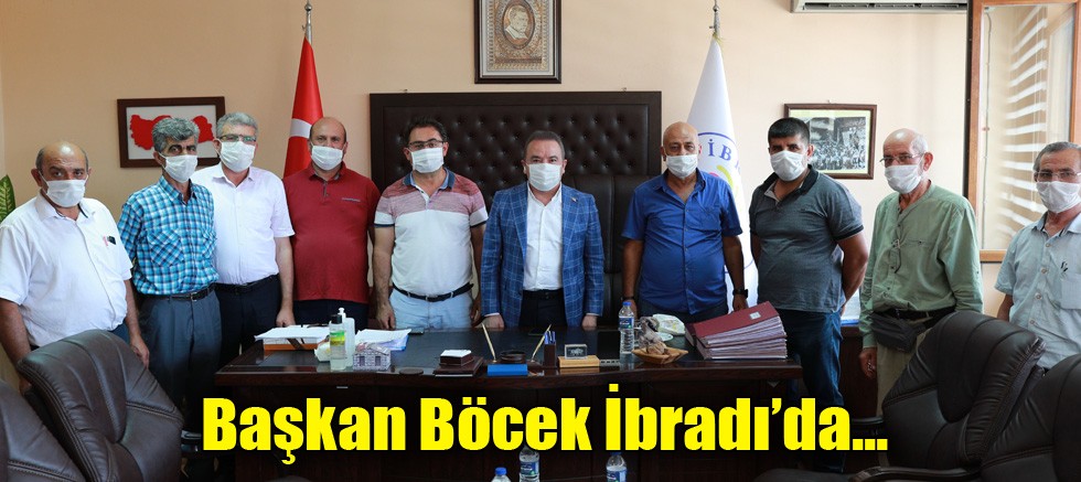 Büyükşehir Belediye Başkanı Muhittin Böcek, belediye bürokratları ile birlikte İbradı ilçesine çalışma ziyareti gerçekleştirdi. İlk olarak İbradı Belediye Başkanı Serkan Küçükkuru’yu ziyaret eden Başkan Muhittin Böcek, “İbradı ilçemizin sorun ve taleplerini dinlemek üzere çalışma arkadaşlarım ile birlikte buradayız. Ev sahipliğiniz için teşekkür ediyorum. Muhtarlarımızın sorunlarını dinleyeceğiz. Bütün ilçelerimizde kimseyi ötekileştirmeden çalışmalarımıza devam ediyoruz” dedi.