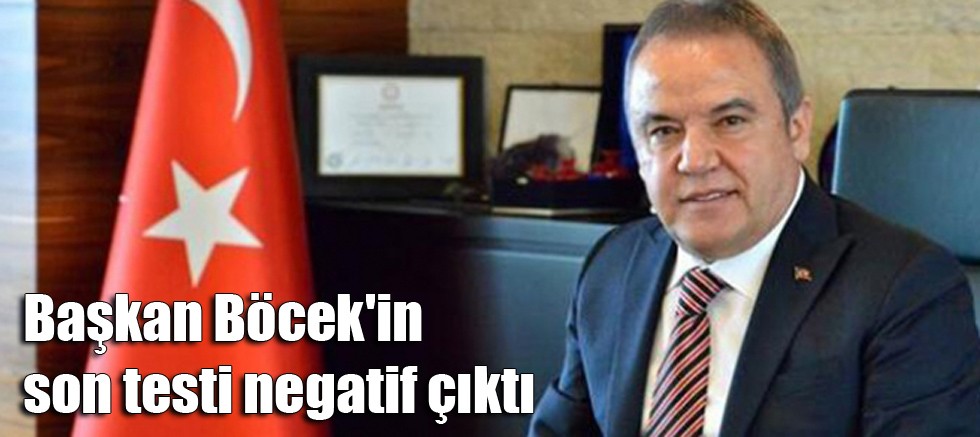 Koronavirüs tedavisi devam eden Büyükşehir Belediye Başkanı Muhittin Böcek'in yapılan son kontrol PCR testi negatif çıktığı bildirildi.