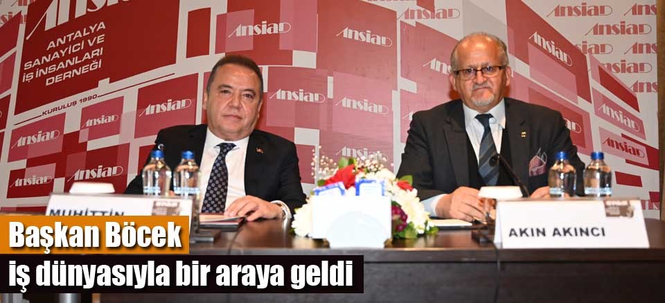 Antalya Sanayici ve İş İnsanları Derneği (ANSİAD) 2022 yılı 7. Olağan Toplantısı, ANSİAD Başkanı Akın Akıncı’nın toplantı başkanlığında, Antalya Büyükşehir Belediye Başkanı Muhittin Böcek’in katılımıyla “Antalya Büyükşehir Belediyesi'nin 3 Yılda Gerçekleştirdiği ve Gerçekleştireceği Projeler” konusunda, ANSİAD üyesi iş insanları ve misafirlerin katılımıyla gerçekleştirildi.