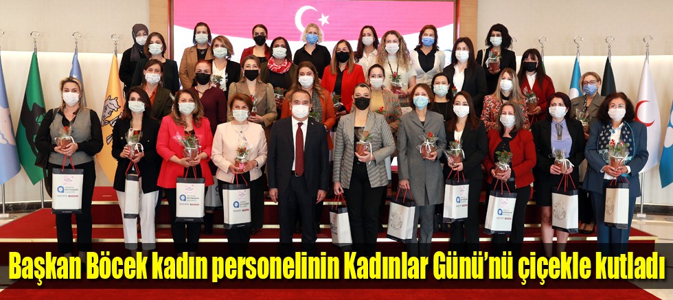 Antalya Büyükşehir Belediye Başkanı Muhittin Böcek, 8 Mart Pazartesi günü idari izinli sayılacak belediyede çalışan kadın yönetici ve personelin ‘8 Mart Dünya Emekçi Kadınlar Günü’nü kutlayarak, çiçek verdi.