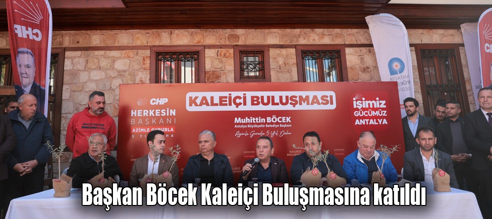 Antalya Büyükşehir Belediye Başkanı ve Başkan Adayı Muhittin Böcek Kaleiçi bölgesindeki esnaf, turizmci, bölge muhtarları ve vatandaşlar ile Kaleiçi Buluşması gerçekleştirdi. Muratpaşa Belediye Başkanı Ümit Uysal’ın da katıldığı buluşmada Bölge halkının ve esnafın taleplerini dinleyen Başkan Böcek, Antalya’nın tarih kokan yeri Kaleiçi’ne yapılan çalışmaları anlattı.