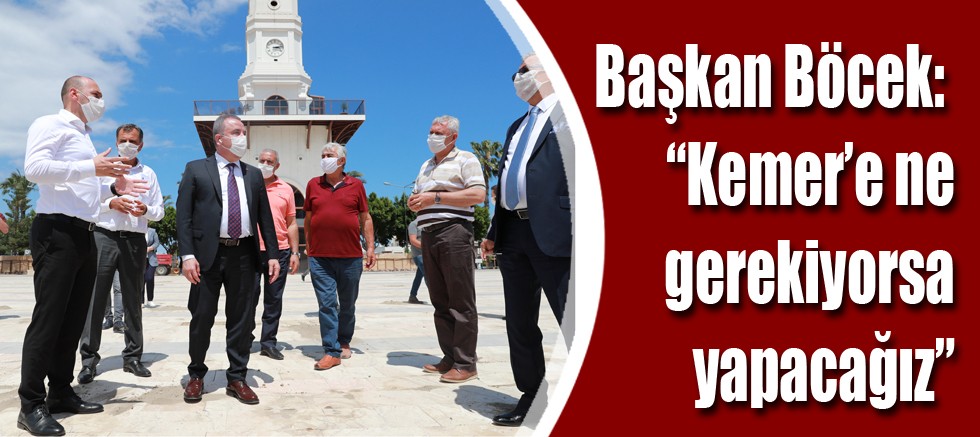 Kemer Cumhuriyet Meydanı Projesi çalışmalarında sona gelindiğini belirten Başkan Böcek, seçim programlarında olmamasına rağmen Kemer Cumhuriyet Meydanı’nı adına yakışır bir şekilde düzenleyerek büyüttüklerini söyledi. Başkan Böcek, meydandaki çalışmaların Haziran ayı içerisinde tamamen bitirileceğini müjdeleyerek, “Koronavirüs salgını ortadan kalkıp turizm sezonu açıldığında Kemer ziyaretçilerini yepyeni bir meydanla karşılayacak. Proje tamamlandığında Kemerliler büyük ve kullanışlı bir tören alanına kavuşacak” dedi.