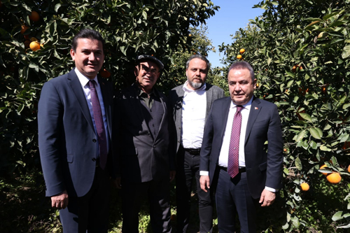 Başkan Böcek’in Kumluca programı kapsamında, Kumluca Ziraat Odası Başkanı Hidayet Kökçe ile birlikte daha önce Tarımsal Hizmetler Dairesi Başkanlığı tarafından faydalı böcek salınımı yapılan Çiftçi Muhammet Arıcan’ın portakal bahçesini ziyaret etti.