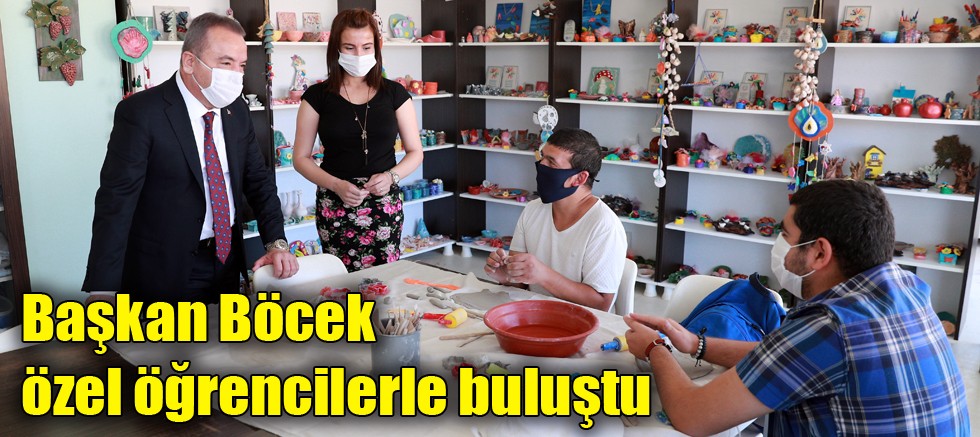 Başkan Böcek, merkezde eğitim alan özel öğrencilerle bir araya gelerek, sohbet etti. Atölyelerde öğrencilerin çalışmalarını yakından takip eden Başkan Böcek, müzik atölyesindeki öğrencilerle birlikte bağlama çaldı. Ailelerle de buluşan Başkan Muhittin Böcek, sorun, talep ve önerilerini dinledi.