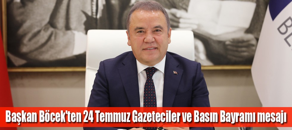 Antalya Büyükşehir Belediye Başkanı Muhittin Böcek, 24 Temmuz Gazeteciler ve Basın Bayramı nedeniyle bir mesaj yayınladı. Başkan Böcek mesajında şöyle dedi: