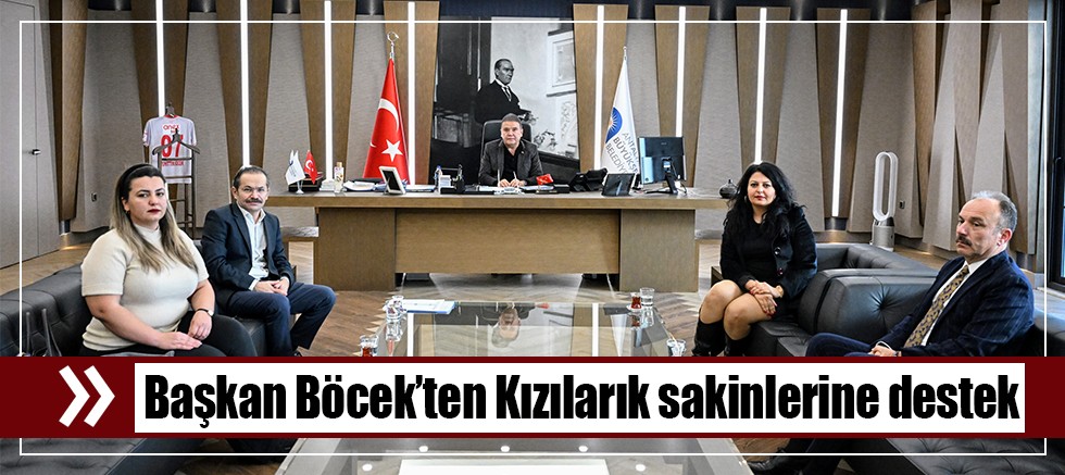 Kızılarık Barınma Platformu üyeleriyle bir araya gelen Antalya Büyükşehir Belediye Başkanı Muhittin Böcek, Kızılarık Mahallesi'ndeki vatandaşların barınma hakkı ile ilgili verdikleri hukuk mücadelesini desteklediklerini ve olumlu sonuçlanmasını temenni ettiklerini söyledi.