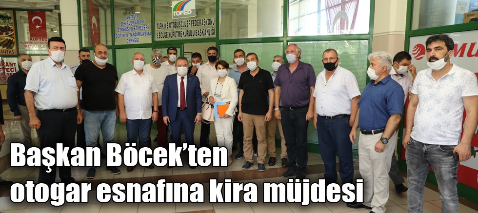 Antalya Şehirlerarası Otobüs Terminali’ndeki esnafla bir araya gelen Antalya Büyükşehir Belediye Başkanı Muhittin Böcek, pandemi döneminde faaliyetleri durdurulan otogar esnafından Nisan ve Mayıs ayı kiralarının alınmayacağını müjdeledi. Başkan Böcek, konuyla ilgili teklifi Cuma günü gerçekleştirilecek Büyükşehir Meclisi’ne sunacaklarını kaydetti.
