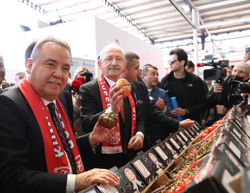Antalya Büyükşehir Belediyesi, Kumluca Belediyesi, Kumluca Ziraat Odası, Kumluca Ticaret Odası ve Kumluca Ticaret Borsası işbirliğiyle düzenlenen Kumluca Expo Domates İhtisas Fuarı Kumluca Toptancı Hali’nde başladı. Fuarın açılışına CHP Genel Başkanı Kemal Kılıçdaroğlu, CHP Genel Başkan Yardımcıları, CHP Antalya Milletvekilleri, İYİ Parti Antalya Milletvekili Hasan Subaşı, Antalya Büyükşehir Belediye Başkanı Muhittin Böcek, İlçe Belediye Başkanları, Meclis üyeleri, sivil toplum kuruluşlarının temsilcileri, muhtarlar ve vatandaşlar katıldı.
