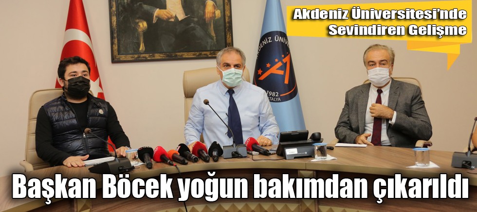 Akdeniz Üniversitesi Hastanesi’nde uzun süredir koronavirüs tedavisi gören Antalya Büyükşehir Belediye Başkanı Muhittin Böcek, yoğun bakımdaki tedavisinin başarılı bir şekilde tamamlanmasının ardından klinik servis odasına alındı.
