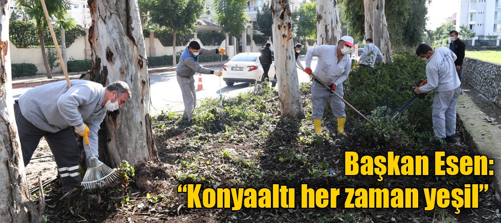 Konyaaltı’nın kış aylarında da rengarenk olduğuna dikkat çeken Konyaaltı Belediye Başkanı Semih Esen, park, bahçe, yeşil alan ve refüjlerde kışlık bakım çalışmalarına devam ettiklerini söyledi. Başkan Semih Esen, “Özellikle kuruyan ağaç dallarını budayan ve yeni fidan dikimi yapan ekipler, kaldırım ve sokakları da süpürerek genel temizlik yapıyor. Yeşil bir kent için çalışmalarımız devam ediyor. Geçtiğimiz yıl 45 bin metrekare yeni park ve yeşil alanı bölge halkımızın kullanımına açtık. Bu yeni açtığımız alanlarda kendi yetiştirdiğimiz 260 bin bitki diktik. Böylece, hem çevremizi güzelleştirdik hem de büyük bir tasarruf sağlamış olduk. Konyaaltı’nda kişi başına düşen yeşil alan miktarını daha da yukarılara taşımak için çalışmalarımıza devam etmekteyiz.” dedi.