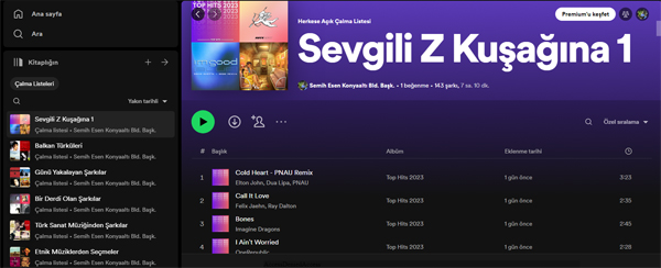 Konyaaltı Belediye Başkanı Semih Esen, müzik tutkunlarının olmazsa olmaz uygulamaları arasında yer alan Spotify’da. Başkan Esen, müzik dinlemeyi sevenler için gelişmiş bir müzik kutusu gibi zengin seçenekler sunan, özellikle de genç neslin vazgeçilmezlerinden olan Spotify'daki hesabında hazırladığı zengin seçkiyle dikkat çekiyor.