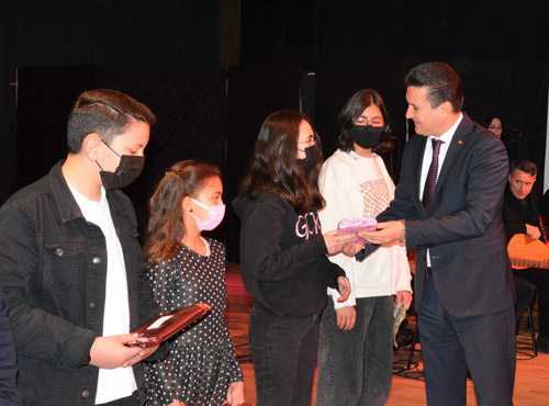 Başkan Köleoğlu, ‘’Çanakkale Zaferi’’ yarışmalarda dereceye giren öğrencilere hediyelerini takdim etti.