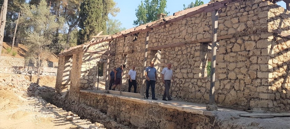Aksu Belediye Başkanı Halil Şahin kütüphaneye dönüştürülecek olan eski Macun İlkokulu binasındaki restorasyon çalışmalarını inceledi.