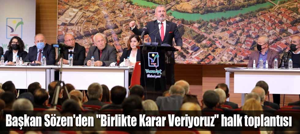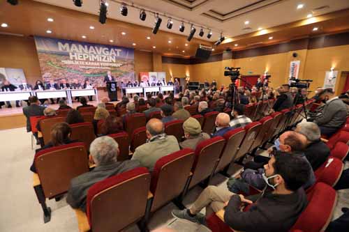 Manavgat Belediye Başkanı Şükrü Sözen, gündeme ilişkin çok önemli konuları Manavgat halkıyla paylaşmak amacıyla “Manavgat Hepimizin-Birlikte Karar Veriyoruz” başlıklı geniş katılımlı bir halk toplantısı düzenledi. Atatürk Kültür Merkezi’nde düzenlenen halk toplantısına, siyasi parti ilçe başkanları, belediye meclis üyeleri, sivil toplum kuruluşu temsilcileri ve yönetimleri, odalar ve dernek başkanları ve Manavgat ve Antalya basınının temsilcileri ve Manavgat halkı katıldı. Büyük ilgi gören toplantıda konferans salonu dolup taşarken, pek çok vatandaş da Başkan Şükrü Sözen’in konuşmasını fuaye alanına kurulan dev ekrandan izledi.