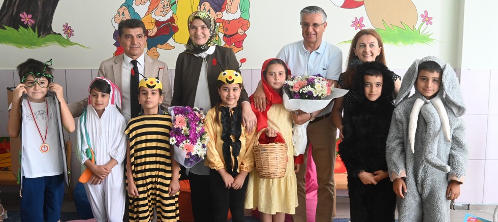 Başkan Topaloğlu ve İlçe Milli Eğitim Müdürü Bekar ile öğretmenler, okulda hazırlanan masal, tasarım ve el becerileri ile akıl ve zeka oyunları atölyelerinin açılışını gerçekleştirdi.