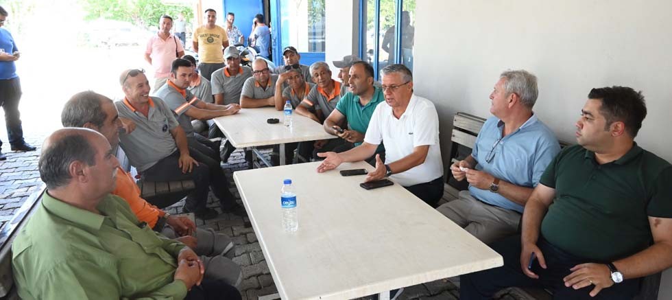 Hizmet alanında gecesini gündüzüne katarak çalışan belediye personeli ile sohbet eden Başkan Topaloğlu ile Başkan Yardımcıları Gül ve Yalın, işçilerin bir ihtiyacı olup olmadığını da sordu.