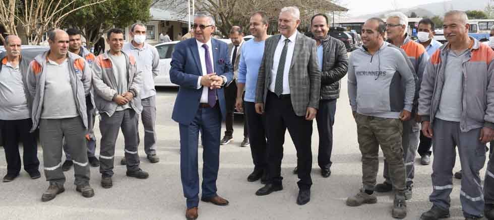 Arslanbucak Mahallesindeki Kemer Belediyesi Hizmet Alanında belediye personeliyle buluşan Belediye Başkanı Topaloğlu’na, Kemer Belediye Başkan Yardımcıları Emin Gül, Baki Yalın ve Gülsüm Bal ile birim müdürleri eşlik etti.