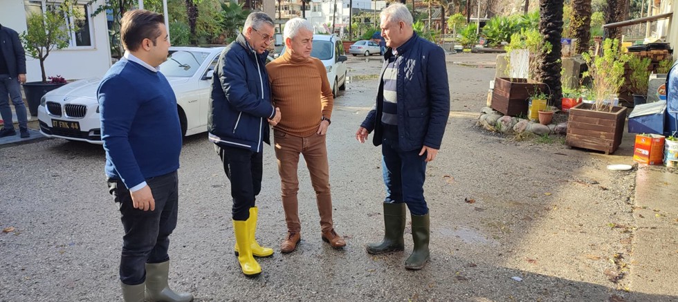 Yaşanan sel felaketinin ardından Kumluca’ya geçen Başkan Topaloğlu, daha sonra Finike’de belediye Başkanı Geyikçi ile bir araya gelerek geçmiş olsun dileklerini iletti.