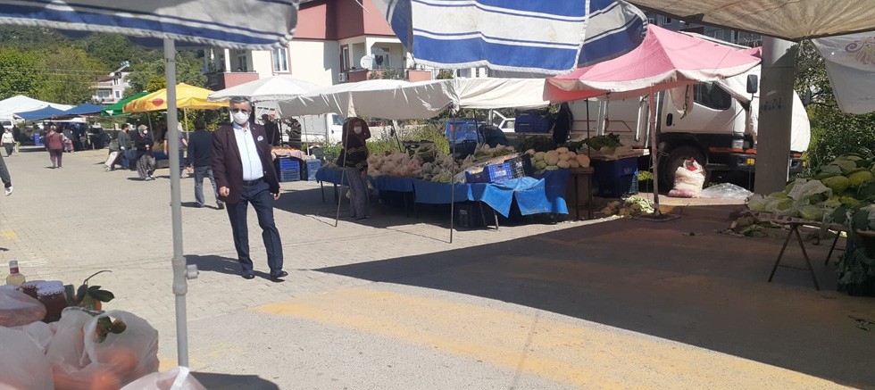 Kemer Belediye Başkanı Necati Topaloğlu, Göynük mahallesinde kurulan semt pazarında yeni tip koronavirüse (Kovid-19) karşı alınan tedbirleri denetledi.