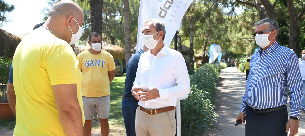 Kaymakam Dayanç ve Belediye Başkanı Necati Topaloğlu koronavirüs tedbirleri kapsamında alınan önlemler ile ilgili denetimlerini, Ayışığı sahili, Liman caddesi, Göynük günübirlik alanındaki esnaf, Çamyuva mahallesinde yaptı.
