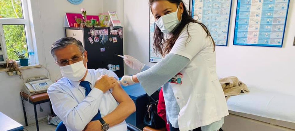 Eşi Fikriye Topaloğlu ile aile hekimliğinde aşısını olan Başkan Topaloğlu, aile hekimliğindeki sağlık personeli ile de kısa bir süre sohbet ederek, kendilerine teşekkür etti.