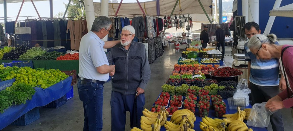 Kemer Belediye Başkanı Necati Topaloğlu, Kuzdere Mahallesi'nde kurulan sebze ve meyve pazarında tezgah açan esnafı ziyaret ederek hayırlı işler dileklerinde bulundu.