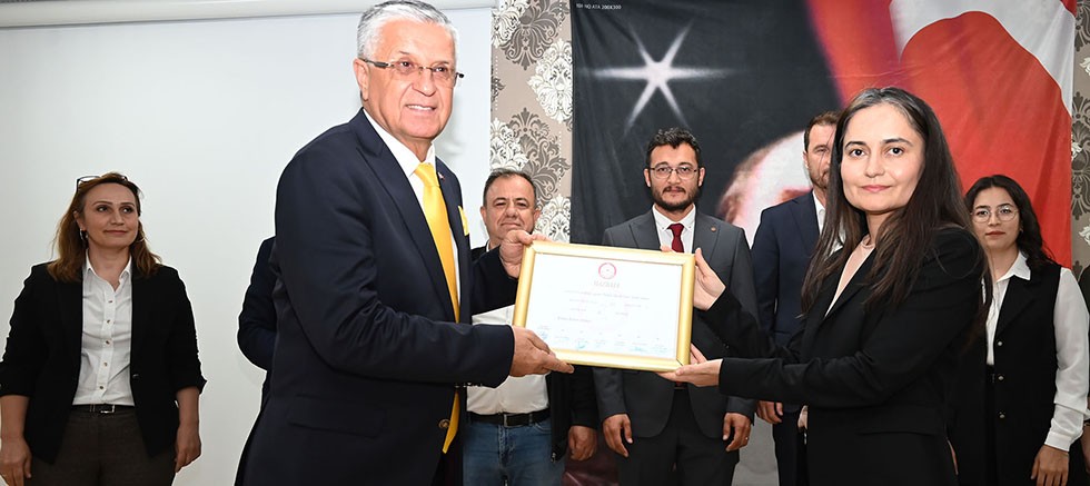 Mazbata töreninde Başkan Topaloğlu, meclis üyeleri, muhtarlar ve azaları mazbatalarını İlçe Seçim Kurulu Başkanı Gülser Güzeloğlu Ahlat’tın elinden aldı.