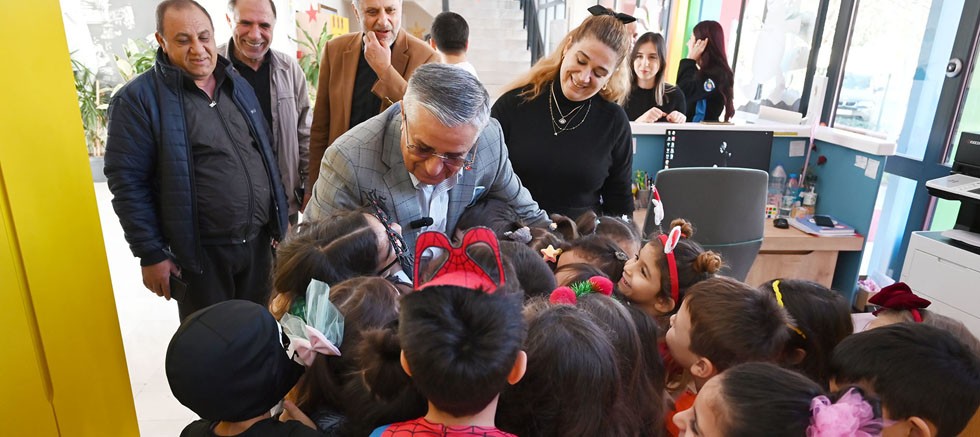Belediye Başkanı Topaloğlu, yılbaşı heyecanı yaşayan minik öğrencilerle, selamlaşıp sohbet etti. Bazı öğrenciler, “Başkan amcalarına” sarıldı.