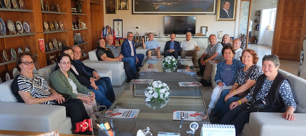 Aydın Ortaklar Öğretmen Okulu’nda aynı dönemde okuyan arkadaşlarının ziyaretinden duyduğu memnuniyeti dile getiren Başkan Topaloğlu, arkadaşlarıyla eski günleri yad etti.