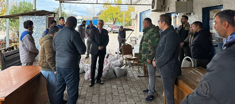 Başkan Topaloğlu, Arslanbucak Mahallesi’nde yer alan Kemer Belediyesi Hizmet Alanı’nda dün akşam gece geç saatlere kadar canla başla çalışarak su taşkınlarının olduğu bölgelerdeki suyu tahliye eden ve mağduriyet yaşayan vatandaşlara yardım eli uzatan Kemer Belediye personelini ziyaret etti.