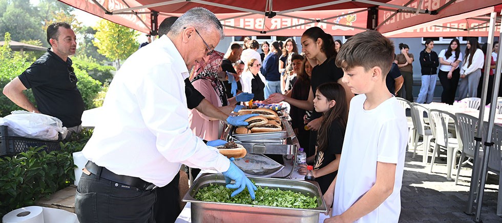 Öğrenci ve velilerle tek tek selamlaşarak sohbet eden Başkan Topaloğlu, mangalın başına geçerek öğrencilere kendi elleriyle köfte pişirdi. Başkan Topaloğlu ve beraberindekiler daha sonra öğrencilere köfte ekmek dağıttı.