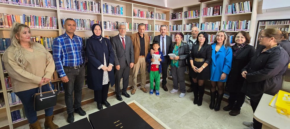 Başkan Topaloğlu, kütüphane sorumlusu Duygu Yeşil ve kütüphane çalışanlarıyla sohbet ederek Kütüphane Haftalarını kutladı.